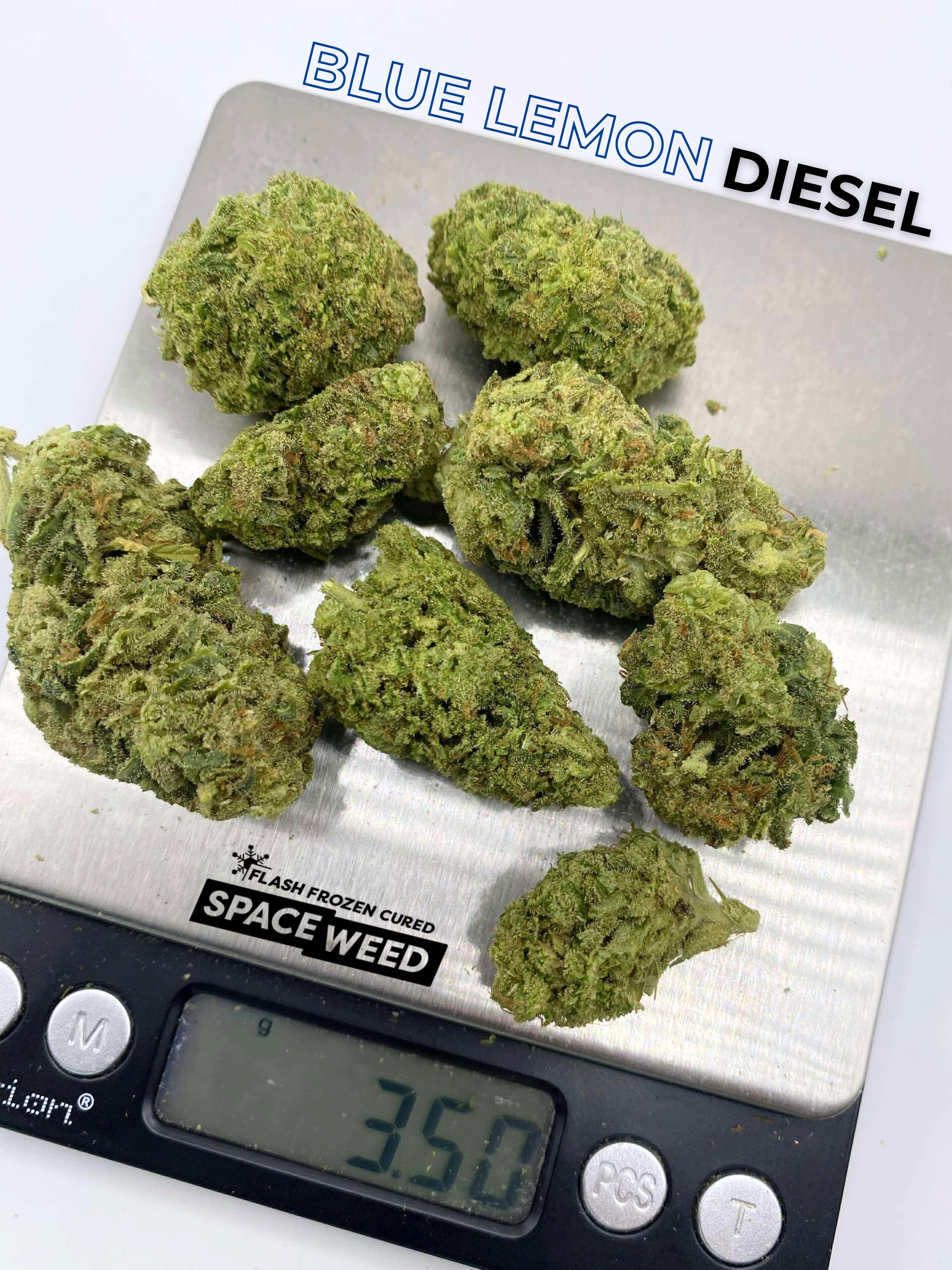Blue Lemon Diesel is a sativa-dominant hybrid bursting with sharp lemon zest, sweet blueberry notes, and a lig...