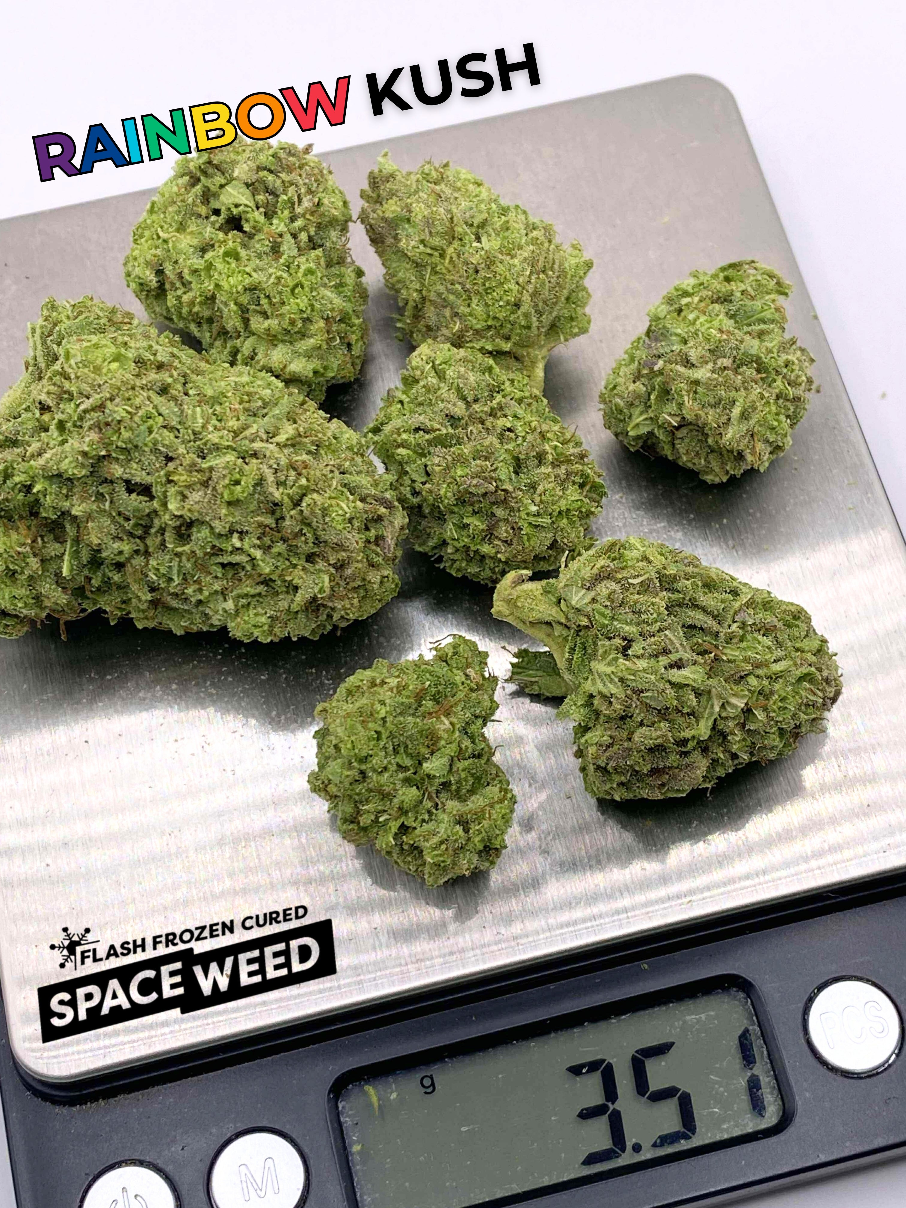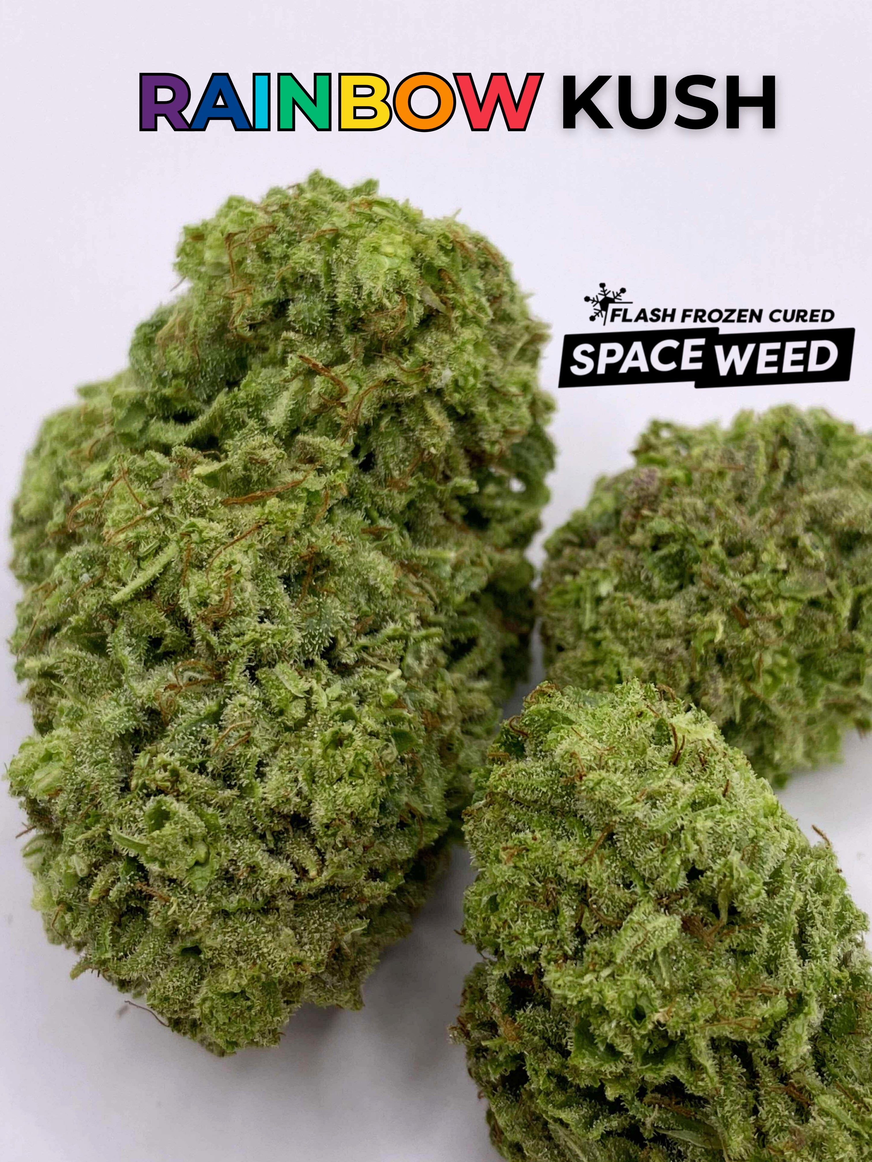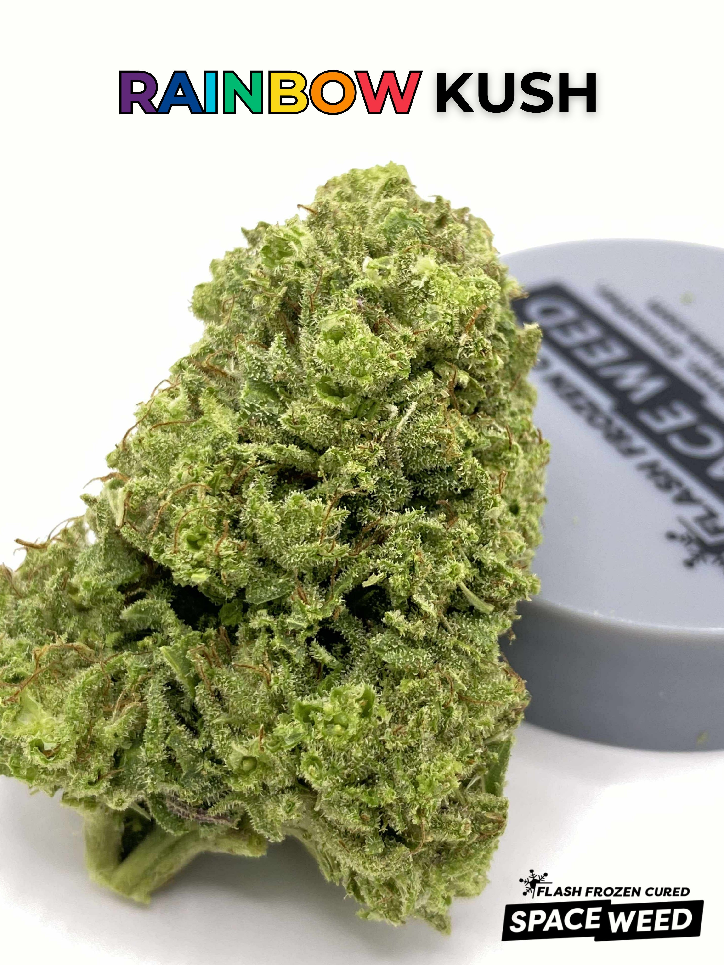 Rainbow Kush is a balanced hybrid known for its colorful buds, sweet berry aroma, and smooth herbal finish. It delivers a euphoric, uplifting head buzz paired with a mellow, soothing body relaxation that never feels too heavy. Perfect for creativity, social moments, or unwinding with a bright, feel-good vibe.